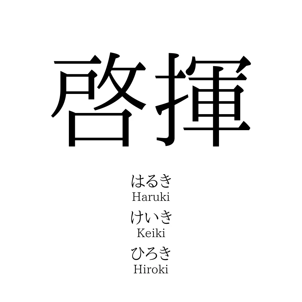 - 「啓揮」の読みは「はるき、けいき、ひろき」などで、男の子の名前に付けられる傾向があります。