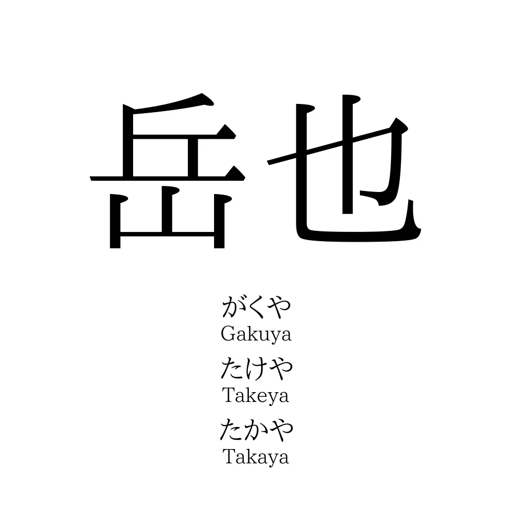 - 「岳也」の読みは「がくや、たけや、たかや」などで、男の子の名前に付けられる傾向があります。