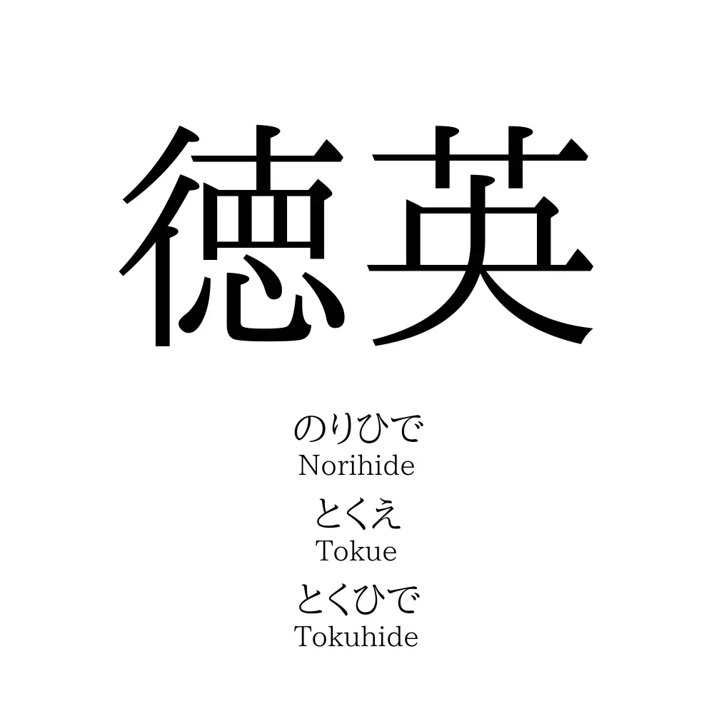 - 「徳英」の読みは「のりひで、とくえ、とくひで」などで、男の子、女の子、性別に関係なく付けられている名前です。