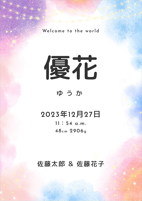 「横書き」の命名書一覧 並べ替え: 利用数 いいね 94 利用数:3354 No.004 【命名書NO.004】作成 87 利用数:2569 No.005 【命名書NO.005】作成 38 利用数:2026 No.002 【命名書NO.002】作成 24 利用数:1452 No.001 【命名書NO.001】作成 90 利用数:1114 No.017 【命名書NO.017】作成 51 利用数:1043 No.012 【命名書NO.012】作成 50 利用数:753 No.009 【命名書NO.009】作成 45 利用数:736 No.008 【命名書NO.008】作成 27 利用数:705 No.029 【命名書NO.029】作成 21 利用数:628 No.003 【命名書NO.003】作成 34 利用数:605 No.030 【命名書NO.030】作成 29 利用数:477 No.010 【命名書NO.010】作成 62 利用数:442 No.014 【命名書NO.014】作成 26 利用数:406 No.019 【命名書NO.019】作成 38 利用数:403 No.018 【命名書NO.018】作成 36 利用数:295 No.015 【命名書NO.015】作成 22 利用数:284 No.028 【命名書NO.028】作成 38 利用数:277 No.016 【命名書NO.016】作成 20 利用数:255 No.032 【命名書NO.032】作成 15 利用数:227 No.033 【命名書NO.033】作成 次のページ 12 タグから探す リース ブルー系 ピンク系 グリーン系 紫系 オレンジ系 カラフル 和風 縦書き 横書き ← 命名書一覧へ × 0 このテンプレートで作成 背景画像のみダウンロード 含まれるタグ すべてのタグ 名付けポンTOP > 命名書 > 「横書き」命名書のテンプレート一覧 名付けポン命名書 はてブ シェア ポスト